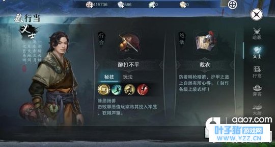 二.义士 义士属于正派可以逮捕带有罪恶值的玩家获得特定的声望这就等于可以无限追杀人而不坐牢但你得找这样的人 特定的任务是可以进入酒馆打听一些不可告人的小秘密.同时精通打造30-130级的装备图纸 武器.饰品.装备都是有耐久度 损耗需要 图纸来增加耐久度