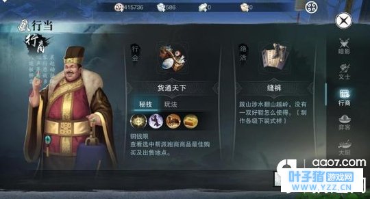 三.行商 行商需要护送货物抵达终点低价买高价卖.途中会遇到NPC 和罪恶值玩家.像毒药我就试过一个杀掉了五个人因为他们在挂机~这样可能会导致你无法完成任务一般一次跑商的时间是半个小时.这导致很多小伙伴选择挂机~挂机有风险~随着秘技升级会加快速度同时也能制作30-130级的装备图纸.鞋子头饰等.