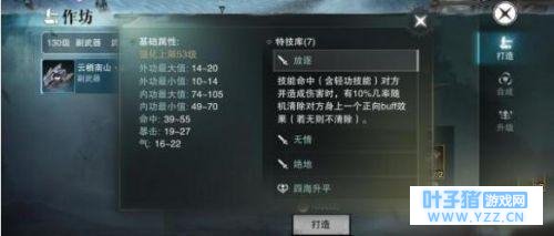 2.人物装备 装备的品级:白,绿,蓝,紫,金,装备品质品阶评分越高,提升修为越高这不用说,二测到96级一身90紫装已经是最好的了,90紫有2个来源,一是作坊里面人工合成,二是宗师本掉落,三是用70蓝色战场套升级而来,前两者属性偏PVE,战场套偏PVP;至于装备强化和洗练具体步骤大侠我在装备强化篇里已经详细介绍过,这里主要说下它们对于修为的提升。 3. 装备特技 对修为数值提升不大,但对副本和pk很有用,装备特技只能用作坊去手工做,用打造台,是百分百出特技的(打造台可以通过商城购买,世界宝箱开启,七星秘宝获得),不用打造台是有几率获得特技,然后如果玩家全身有相同特技装备,那该特技等级提升!