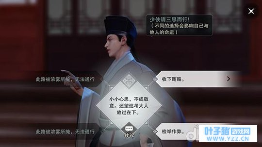 其中最让我意外的就属于“剧情养成”,单机游戏中常见的开放剧情决定NPC命运你在这款游戏中也能见到,常规的角色数值成长,《楚留香》剑走偏锋的以剧情走向来实现角色养成,从而形成游戏独有的成长体系。 承自于古龙IP授权,游戏在保有剧情还原度高的基础上,以支线剧情和奇遇任务形成独有的NPC攻略,《楚留香》部分开放式的剧情、随机触发的奇遇人物会随着玩家的选择左右NPC的命运,比如在游历金陵城时,可能触发受邀监考科举的奇遇,发现考生舞弊,你是愤而检举还是收受贿赂,不同的选择可是会产生不同后果的。