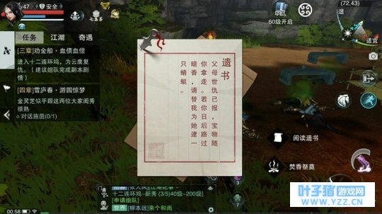 楚留香手游神秘沉香怎么获得? 寻宝过程中还有几率调入藏宝洞穴,遇到神秘人遗留的宝藏和遗书,但是遗骨有毒,不可妄动,否则必将毒发身亡! 遗书暗藏玄机,阅读甚至能从中获得极品宝物的线索:
