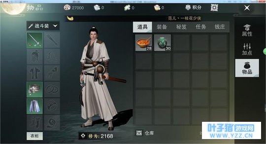 这是游戏人物的物品栏界面,简洁明了。衣柜里面还有各种装扮供玩家们选择。
