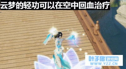 云梦的“江月流芳”是救急和技能真空时的不二选择,借轻功步步跃起,规避伤害的同时对下方队友群体治疗,使用得当也是扭转危机的一大妙招。