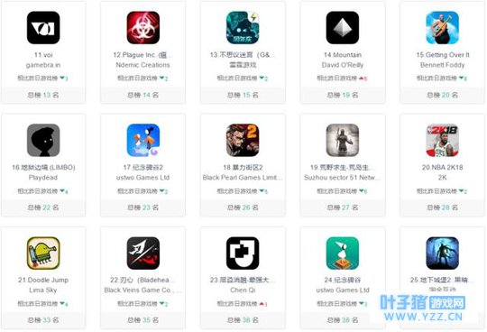 TOP30方面几乎是品质老游戏的天下,偶尔会有一两款休闲益智小游戏突围。本周《voi》排名第11,《Plague Inc.》排名第12,《不思议迷宫》排名第13,《Mountain》排名第14,《Getting Over It》排名第15。其余游戏如《地狱边境》、《纪念碑谷2》、《暴力截取2》等游戏表现都可圈可点。从榜单情况来看,一线游戏企业的系列游戏均有突出表现,如《纪念碑谷》系列、《暴力街区》系列以及《地下城堡》系列地位均很稳固。 整体而言,本周免费榜和付费榜可关注的地方并不多,免费榜新游日益增加,但能够进入榜单前列的基本都是一二线游戏企业的品质作品。付费榜新游突围难度加大,榜单呈现固化现象。