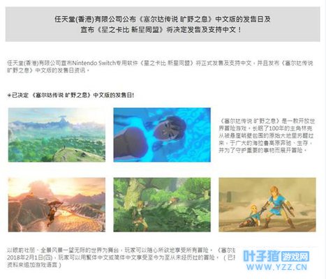 2月1日《塞尔达传说:旷野之息》中文版上线任天堂Switch护航大作《塞尔达传说:旷野之息》在经过漫长的等待后终于要在本周四推出中文版。