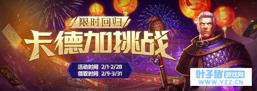 2月1日《风暴英雄》联动《炉石传说》《风暴英雄》2018新春活动第一波来袭:和《炉石传说》的联动活动将于2月1日限时回归。这次奖励再升级,除了《炉石传说》英雄卡德加,完成指定任务还能获得《风暴英雄》中的英雄麦迪文、稀有战利品箱以及更多惊喜。