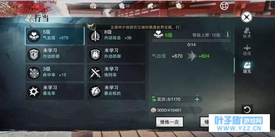 3.行当培元 所有身份的培元都一样,使用见识点提升人物属性。