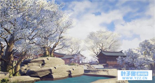 【五大门派各有千秋】 云梦门派所在地有“小桃源”之称,潭水深澈,桃花漫坡,竹屋错落,风光怡然,美如仙境。