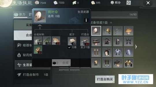 不过,我还只是初入江湖,做装备的技巧也不够娴熟,只能从低级的做起,但这并不能阻碍我的野心!现在我要做的装备是油纸伞和鱼竿,要做这两件装备,你需要掌握挖矿、采药、砍树等等各项技能,才能得到各种原材料。