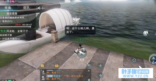 看看我自己的口袋……我好穷,而且我还要存钱给暗香小姐姐买礼物呢!!算了算了,要不我还是想个不花钱的办法吧 苦力忏悔,回头是岸! 后来我到金陵找到NPC游盟陆,向他请教如何做苦力清除罪恶值,他给了我四个选择:抄写明律、巴结府尹的相好、帮衙役干活或者充役折罪。对比了一下,我觉得像我这么有才的人,去抄写明律简直太easy了,我决定选择有挑战性的任务! 帮单身捕快洗衣 看来幕僚是指望不上了,我只好指望捕快可以帮帮我。我来到河边找到了一个正在洗衣服的衙役,我请他帮我向捕快们通融通融,作为代价,我愿意帮他洗衣服……