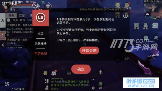 7、双击LS键,然后选择手势录制并点击开始录制