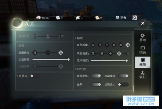 设置画面精度,亲测精度越高画面越美哦! 手机配置足的情况下,强烈建议颜控党设置高画质。