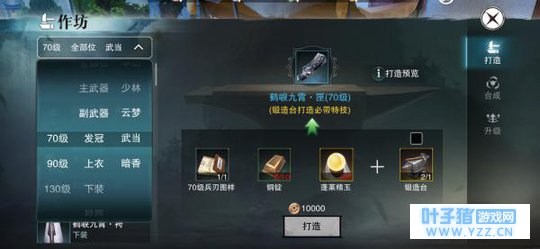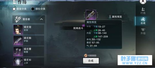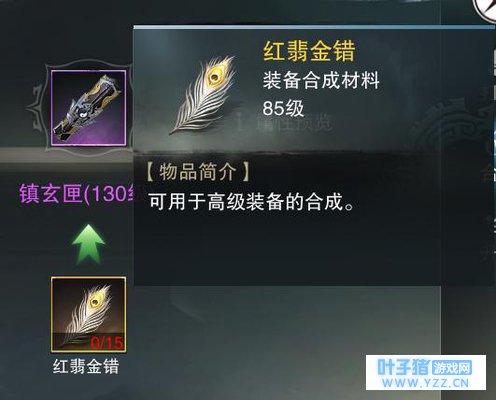 3、极品装备合成: 橙色材料红翡金错可以直接合成130级紫色套镇岳套,估计是团本掉落。