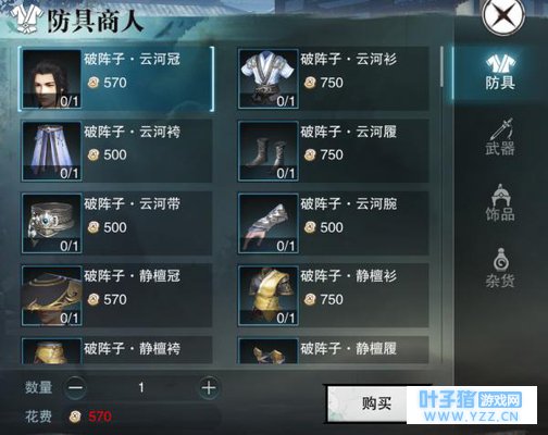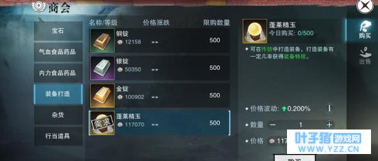 2、手工制作:通过收集材料在作坊选项里手工做70,90,130级全身装备,额外加入锻造台可以做出带有特效的强力装备,并且特效可以继承到新装备上。 也可以直接在摆摊界面用银两购买玩家制作的装备:
