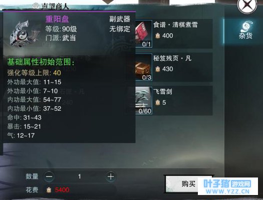 5、门派功勋兑换: 主要用于兑换90级紫色副手武器。