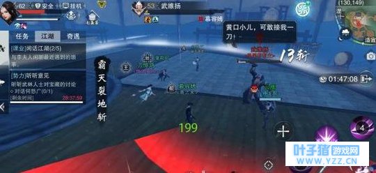 4、挡刀&复仇。 侠士副本中,武维扬将会抓起云鹰替自己挡刀,进入不可攻击状态,此时的攻击对象将变成云鹰,如果没有停火,将云鹰击杀,那么武维扬将会陷入疯狂的复仇狂暴状态,浑身血红,攻击力大幅度提升。(果然是个疯子,又爱他又恨他)。此时应及时停火,避免武维扬进入狂暴状态,造成倒T治疗压力增加。