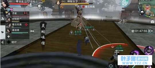 2、灵蛇吐信。 BOSS随机指定一个玩家,跃至其附近释放四段攻击,这个技能是范围技能,前三段为一般伤害,第四段为大量伤害,如果中了不要紧,但需要赶紧躲避。BOSS使用灵蛇吐信攻击较远队友时,建议使用技能如影随形位移到BOSS身边,战斗中的大量较远的位移,都建议使用该技能,减少位移时间,打出更高伤害。