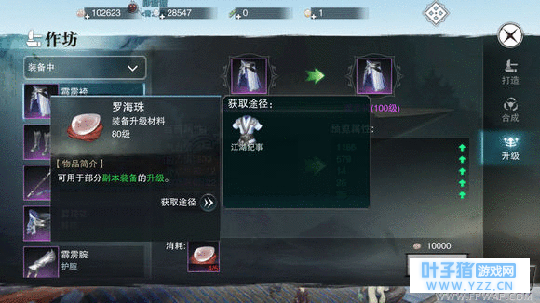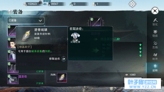 装备可以通过副本打到的材料进行升级和进阶,可以提升装备的基础属性,特别值得注意的是,装备升级只能提升10级,比如80级的装备只能提升到90级,而进阶不能继承!不能继承!不能继承!