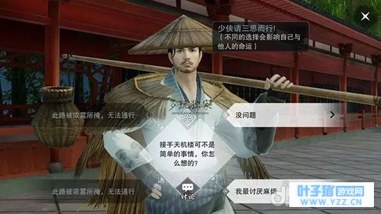 纷乱繁杂的江湖可能不是游戏能表现出来的,我们在玩武侠游戏的时候,应该如何选择,游戏的剧本,游戏的导演,游戏的编剧都是给我们设计好了的。我们在武侠游戏中,就是个心地善良的“大侠”,燃烧自己帮助他人。可是,为什么我们不能再游戏中更自由呢?我们为啥就不能啸聚山林打家劫舍呢?为啥就不能投靠朝廷混个一官半职吗?我家也有一家老小要养活,没空和你们这些大侠组队行侠仗义做好事(当然游戏也要宣传正能量)。