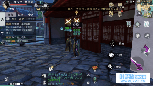 轻功上屋顶 “戏精”NPC 不过在马小哥看来,游戏最大的特色还是那些“戏精”NPC。在《楚留香》中,所有npc都有自己的生活行为,你可以给他们送礼物,达到一定好感还能将他们召唤到身边与你一起行走江湖。而有的npc可能会“碰瓷”你,你可以选择忍气吞声,也可以出手为民除害。不过击杀NPC会影响你未来的走向,一定要三思哦。