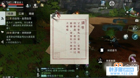 楚留香手游神秘洞穴在哪? 寻宝过程中还有几率调入藏宝洞穴,遇到神秘人遗留的宝藏和遗书,但是遗骨有毒,不可妄动,否则必将毒发身亡! 遗书暗藏玄机,阅读甚至能从中获得极品宝物的线索: 所以,每天的藏宝图记得去挖一下,出现神秘洞穴就是赚了。 《楚留香手游》高自由度武侠手游 免费领取公测万元奖励