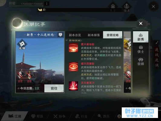 前面的一些小兵就不过多阐述了,只要注意修为低的同学不要一直站在毒上就可以了,别的就真的无法阻止玩家的脚步。 1号BOSS——武维扬 先看一下这位老大的技能都有什么。