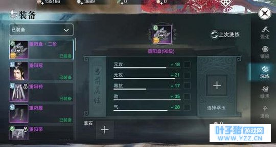 3.装备洗练 装备洗练需要消耗萃石,高级的最多可洗5条属性,中级4条,初级3条,如果洗出自己想要的属性,可以使用萃玉进行锁定,不妨碍你继续洗其他属性,属性应对象职业特性,如少林是火,你洗出风或者其他属性就没什么用处。 洗练手法:洗出一项属性攻击后,用初级翠玉锁定了那项属性攻击继续洗,洗出后,再用高级翠玉锁定2项属性攻击,继续洗练第三条主属性攻击,量力而行。十分费钱。