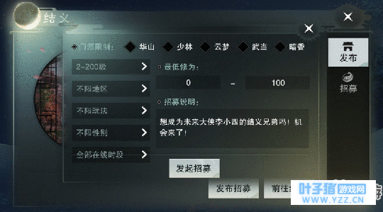 若是想感受兄弟友情却暂时没有可以结义的人,玩家也不必担心。江湖那么大,侠士那么多,结义招募里翻看一遍,就能轻松寻找到志同道合的江湖好友。