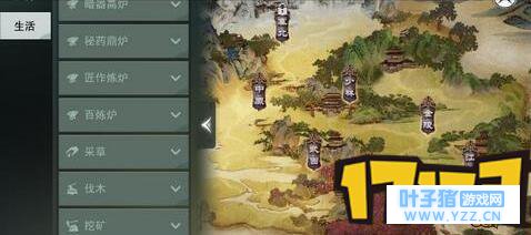 打开地图左侧有生活选项,点开选项可以查看每个地图的材料分布! 我选的是药材,直接可以看出那个地图有产出!药材建议去金陵采集!
