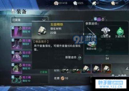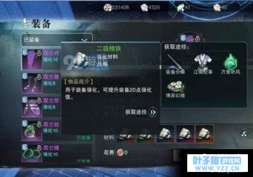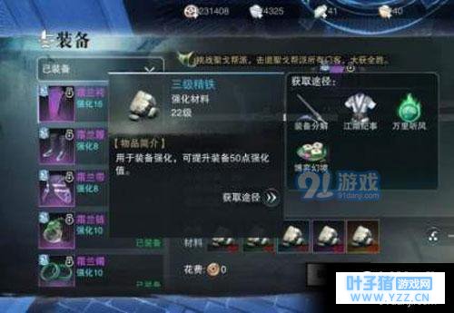三级精铁增加50点强化值,每次通关江湖事迹副本即可获得。