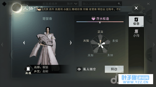 可与楚留香互撩:剧情、拜访、聊天各种方式增进感情 在手游《楚留香》中,“香帅”楚留香可以说是伴随玩家最长时间的角色。他不仅出现在各种剧情任务中,在市井街巷里,也无人不识“香帅”。这让游戏中的“楚留香”的塑造不但变得更为饱满,也能让玩家们感受到更有血有肉的江湖。不仅如此,在手游内还可通过“拜访”来与他聊天和互赠礼物,以便增进感情。