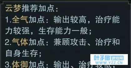 游戏内的推荐就是三个方向,全体,体+气,全气