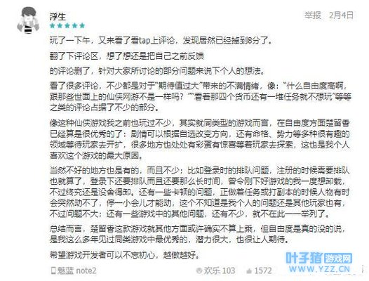 用轻功游山玩水 部分玩家认为,虽然《楚留香》在画面和武侠世界打造方面确实良心,但它始终没有摆脱“氪金”的套路。总的来说,只是一款做的比较“好看”的氪金手游。 笔者认为,全盘否定这种想法未免过于片面,用TapTap上一个高赞答案来说明: