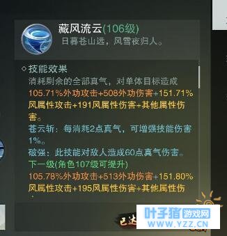 这个是副本技能,很多人说没用,其实不然,说两点:1.技能释放只要打到第一下就算对方跑了也会有伤害,除了最后一下往下冲的那下。2.技能释放后人物会跳起来一下可以立刻接大轻功打一套。 总结:兄弟看你怎么用了。 5.藏风流云