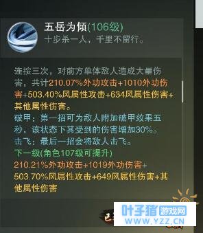应该都知道吧,核心爆发,对面处在击飞状态时放华岳三峰必定暴击。 8.五岳为倾