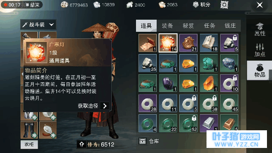 经历过楚留香新春活动的少侠们都知道,兑换时装的特殊道具“广寒灯”是在春节拜年活动产出,如果是每天都参加拜年活动的话,在03.02是刚好会得到14个的。而如果不小心差几个的少侠们,也不用当心,可以使用元宝购买,如下图:
