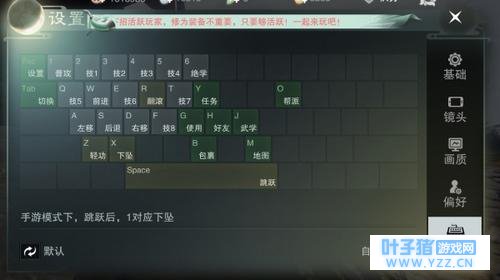 19.本游戏所有的键位都可以重新设置,在设置第五个选项,热键里。