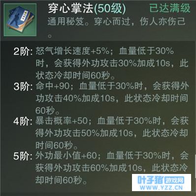 被攻击时有概率将攻击方减速50%持续N秒 这个减速非常的久~ 穿心掌法
