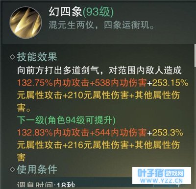 幻四象:中距离主要输出技能之一,向前方扇形范围造成多段伤害,注意控制距离,敌人太远会打空; 五行式:中距离单体高输出技能之一,技能释放动作前奏较长,建议在晕住对方后使用可以保证不打空,因为目标太远技能放出后同样会打空。