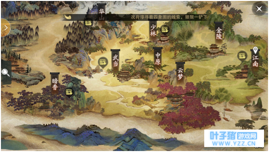 接了任务以后,地图就会出现很多算盘,算盘点是各个跑商的商人,江南有很多个,其余地方门派有一个,中原金陵云梦没有商人!
