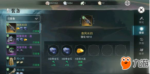 点击镶嵌 可以看到宝石相关 (注:很多人说送的抗性宝石不能镶嵌,那是因为装备的等级不够 40级装备以下只有二孔 ,50级装备三孔 70级装备四孔 ,到第三孔才能镶嵌抗性相关宝石。) 这里可以看到宝石一键合成 。 2、洗练