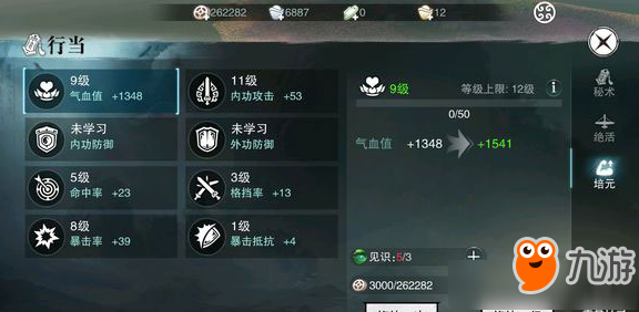 每天行当一定要清空 ,不光为了经验 更为了见识点 ,见识点可以用来点行当培元属性 ,优先点攻击与气血 富裕再点其他,打开右上角 点开行当 选择第三个培元。 |