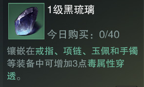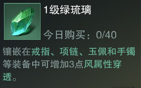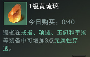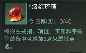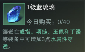 琉璃类宝石: 黑琉璃——毒穿 红琉璃——火穿 绿琉璃——风穿 黄琉璃——元穿 蓝琉璃——水穿