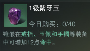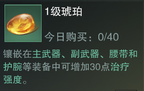 玉类宝石: 紫牙玉——命中 血玉——格挡 梅花玉——暴击 琥珀——治疗强度 碧玺——治疗增益