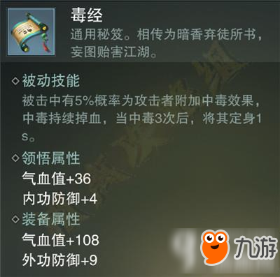 这个PVP神技 对方攻击你有一定几率中毒,当中毒层数达到3次定身一秒。 这个定身非常非常容易触发!!! 而且毒经会大量增加血量 五岳神定
