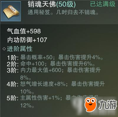 生命值低于30%会增加10%外功攻击 满级是增加60%外功攻击 物理职业 反击利器! 销魂天佛