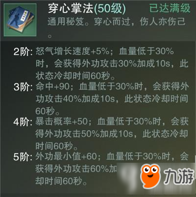 被攻击时有概率将攻击方减速50%持续N秒 这个减速非常的久~ 穿心掌法