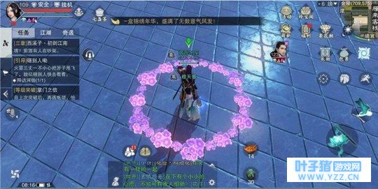 花朝节活动 花朝节来临,江湖各方人士纷纷来此共享佳节盛典。天机阁也将开放一批节日成就,邀请少侠共襄盛举。良辰美景,愿与君共度花朝。 【活动一】满庭芳-欢声占花签 活动时间:3月23日更新后-4月13日更新前 活动内容:活动期间,每日前往金陵李红袖处,可以随机抽取一枚“花名签·逍遥”,并获得道具“留春笺”。每日最多获得1封留春笺,累计获得14封留春笺即可兑换永久挂件·绝尘鸢。 抽取花名签时,少侠亦将随机获得各种“情花筹”状态——该状态将会引导你邂逅有缘之人。 该活动找到李红袖对话抽签获得一个随机增益状态,如5%外防、骑速等,然后完成后续任务,一共可以获得2个花神绣以及3个同心锁和3个玉团春道具,花神绣可以在节日商店兑换各种物品,同心锁和玉团春是后面提到的花间醉活动的参与道具。