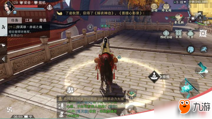 导读 楚留香手游的坐观万象活动经验还是很丰厚的,这个玩法每天都会有新的地点更新,小编整理了最新的资料和大家分享下吧! 楚留香手游3月26日打坐点在哪? 云梦观梦台 武当长生殿 少林天王殿 华山龙渊... 楚留香手游的坐观万象活动经验还是很丰厚的,这个玩法每天都会有新的地点更新,小编整理了最新的资料和大家分享下吧! 楚留香手游3月26日打坐点在哪? 云梦观梦台 武当长生殿 少林天王殿 华山龙渊北 中原天机营 3月26日坐观万象位置一览