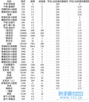 方思明喜欢什么?所有NPC都喜欢的,宝石。不过很烧钱,养他养到倾家荡产了!下面给大家一张大部分物品的好感度,需要多少钱的图: